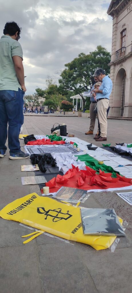 Aguascalientes.– Con barcos de papel desplegados en plazas públicas, integrantes de Amnistía Internacional se manifestaron este fin de semana para exigir el respeto al derecho de libre navegación hacia Palestina y el fin del bloqueo impuesto en la Franja de Gaza.
