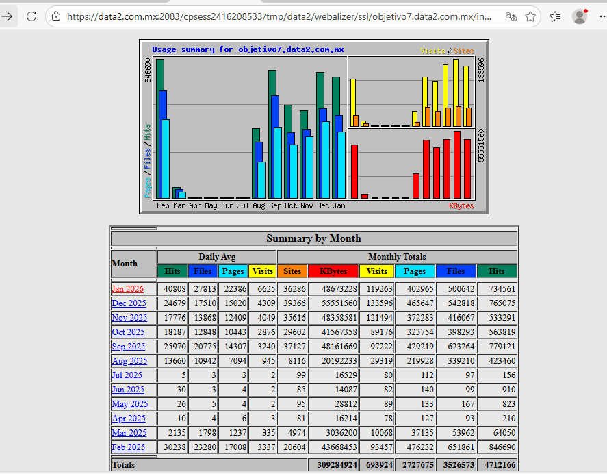 - Enero 2026 (en curso): más de 119 mil visitas acumuladas